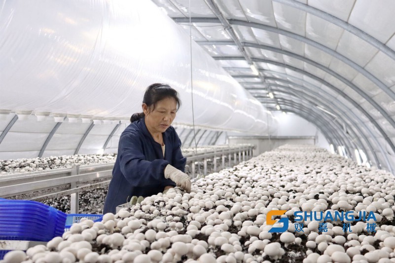 2022年7月,總投資1300余萬(wàn)元的新基村蘑菇基地投入使用,16座愛(ài)爾蘭弧形種植菇棚采用三次發(fā)酵技術(shù),融合數(shù)字化技術(shù),實(shí)現(xiàn)工廠化種蘑菇,日均產(chǎn)量達(dá)3.3噸,是傳統(tǒng)大棚種植效率的8倍多。