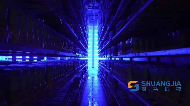 菌絲經(jīng)過27天左右的生長(zhǎng)后就可以進(jìn)入釆收環(huán)節(jié),這27天就在生育室(菇房)里成長(zhǎng)。藍(lán)光波段一方面可以促進(jìn)金針菇生長(zhǎng),另外一方面還有消菌殺毒效果。