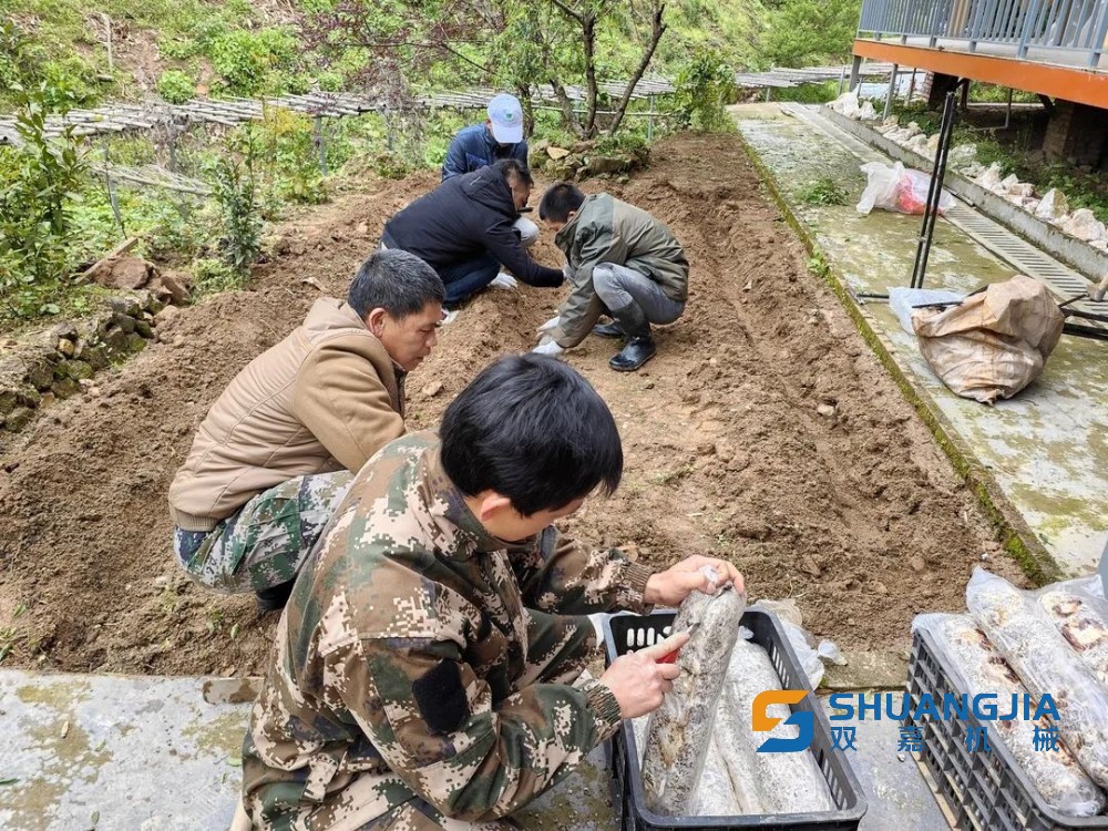 技術(shù)人員介紹說,由于菌棒含豐富的有機(jī)質(zhì),做好這些“無菌操作”,是為了防止白蟻蟲鼠的侵蝕,讓食用菌能順利成長。這些前期工作完成后,隨即把菌棒一根一根撕開薄膜,放置在挖好的溝里,把土覆蓋上去,才完成整個(gè)種植任務(wù)。三條溝分別種植了香菇、靈芝、黑皮雞樅菌,另外一塊空地上則倒上營養(yǎng)土種植上了赤松茸。