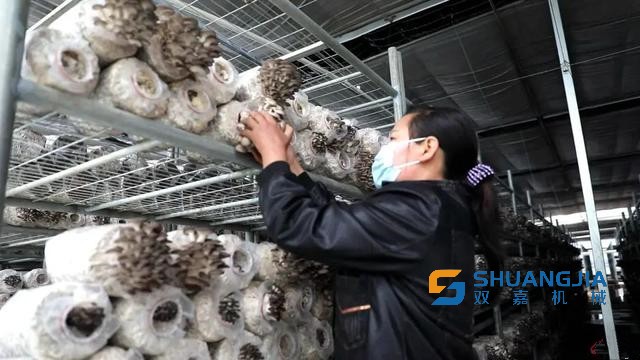 在大棚內(nèi),一垛垛菌菇棒排列整齊,平菇爭相從菌棒袋口長出,有的展開傘柄,有的剛剛冒頭。農(nóng)戶在大棚內(nèi)不停穿梭,采摘新鮮的平菇,隨后,被打包放置于0-2℃冷凍車間,從采摘到儲存,整個流程不到十分鐘,極大確保平菇的新鮮。據(jù)了解,每個菌棒平均可采摘2.5斤平菇。目前,公司主要產(chǎn)品種類為平菇和豬肚菇,主要銷往廣州、深圳、上海以及湖南。湖北雙嘉食用菌機械設(shè)備,食用菌工廠生產(chǎn)線。
